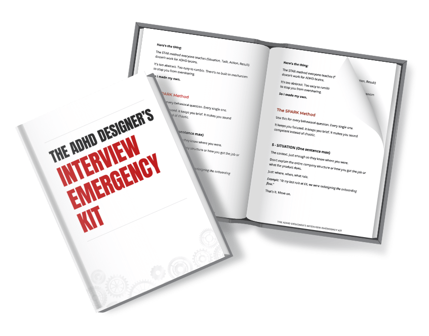 - The SPARK Method My ADHD-adapted framework for behavioral questions. Keeps you focused, brief, and competent-sounding instead of chaotic. (The STAR method everyone teaches doesn't work for us - this does.)